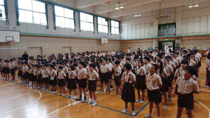 G20サミットによる臨時休校がおわり、久しぶりにみんなが集まりました。校長先生からは、7月7日は「たなばた」ですが、「クールアースデー」でもあるとお話しされました。7月7日の夜は電気を消して、織姫(こと座の「ベガ」)とひこ星(わし座の「アルタイル」を探すことを通して、地球を冷やしていこうという日だそうです。梅雨ぞらが続きますが、ルールを守って学校生活を送ってくださいね!