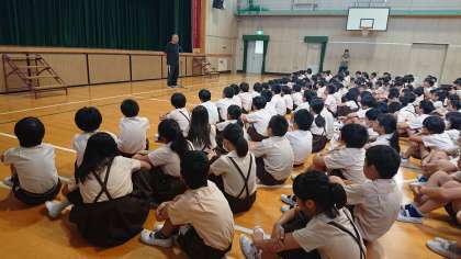 校長先生の話に続いて、生活指導の担当からは「いかのおすし」について話がありました。「いか」⇒行かない 「の」⇒乗らない 「お」⇒大きな声で助けを求める 「す」⇒すぐ逃げる 「し」⇒まわりの大人に知らせる 明日から長期の休みとなりますが、安全に気をつけて過ごしてください。
