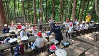 オリエンテーリングが終わり、飯ごう炊さんでカレーライスづくりを行っています。
