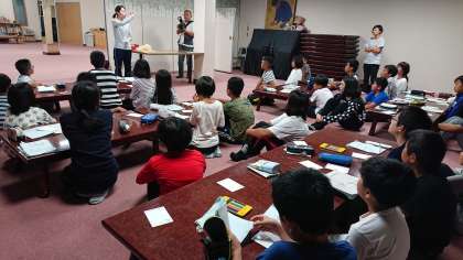 林間学習の想い出を絵葉書に書いて、家族の方伝えようとがんばっています。8月1日にこちらから投函してもらいます。