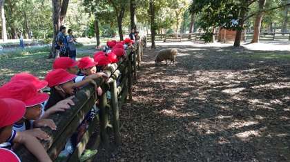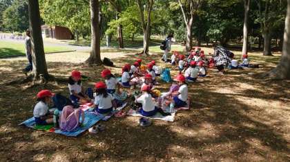 1年生は堺市にある「大泉緑地」に出かけました。係の方が整備していただき、1年前の台風による被害はきれいになり、子どもたちも楽しく遊び、学ぶことができました。羊を見たり、どんぐりを拾ったりと息つく暇なく活動を行いました。時間とともに暑さも増してきたので、木陰を選んでお弁当を食べました。(その2につづく)