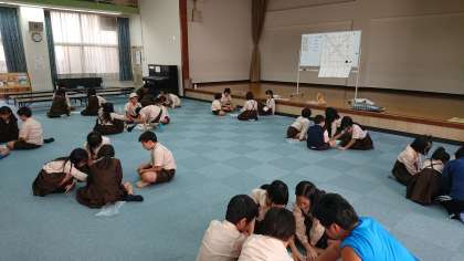 今日は韓国・朝鮮のすごろくである「ユンノリ」を楽しみました。サイコロの代わりに「ユッ」とよばれる木の棒を投げて、落ちたときの「ユッ」の状態に応じてコマを進めていきます。ルールは難しいですが、やっているうちに作戦を考える必要のある遊びとわかりました。