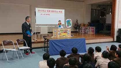 大阪府少年サポートセンターの方が講師となり、5年生を対象として「非行防止・犯罪被害防止教室」を開催しました。SNS等のやり取りについて時間を割いて話がありました。送り手が何気なく送ったメッセージでも受け止め方は様々で、いじめの原因になることもあると説明くださいました。また、知らない人とのやり取りについても、巧みに陥れようとすることもあると注意喚起されました。そのあと、ペープサートを使って「万引き」が非行の始まりとなるので、良心に基づいて行動することが大切であると伝えていただきました。