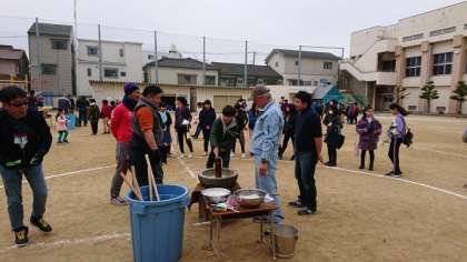 午前9時から「PTAもちつき大会」が始まりました。「きなこ」「しょうゆのり」「さとうしょうゆ」の3つの味ともとてもおいしいです。やはり、自分たちでついたおもちの味は格別です。今朝6時過ぎからお手伝いをいただいた保護者のみなさま、PTA役員のみなさま、地域のみなさま、子どもたちのためにほんとうにありがとうございました。