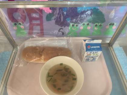 さて、給食が始まって3日目となりました。今日の献立は、小さなつぶつぶさつまいもの入った「おさつパン」と「牛乳」「ハムと野菜の中華スープ」でした。スープには、ハム10g、たまねぎ30g、にんじん10g、にら5g、干ししいたけ0.6gが入っています。12日までの給食は副菜が1品のため肉類や野菜類が少なめとなっています。ご家庭では特にこの期間、たんぱく質を多く含む肉・魚・卵・大豆製品、ビタミンや食物せんいを多く含む野菜をしっかりとるようにしてあげてください。