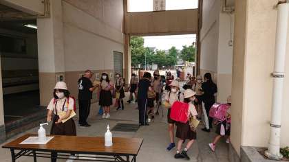 昨日6/3より、黄色の用紙に印刷した新しい「健康観察表」を見ながら、登校時に健康チェックを行っています。黄色の新しい「健康観察表」では、家族の方の体調に関する項目が増えましたので、記入のご協力をお願いします。