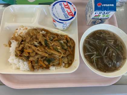 【今日の献立】和風カレー丼 もずくとオクラのとろり汁 ヨーグルト