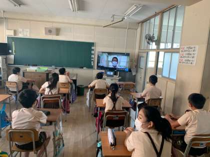 本校では毎週のはじめに児童朝会をおこなっていますが、これまでは新型コロナウイルス感染症予防のために開催を見合わせてきました。大阪市全体で取り組む「いじめについて考える日」に合わせて、熱中症を防ぐ観点からもオンラインによる児童朝会にチャレンジしました。