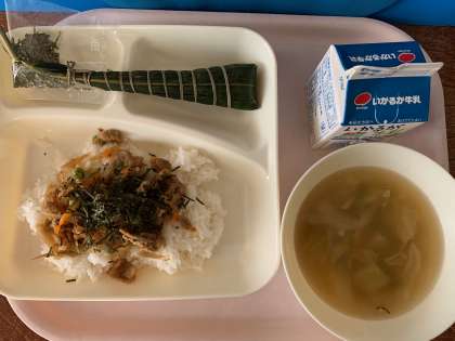【今日の献立】きんぴらちらし すまし汁 ちまき 牛乳