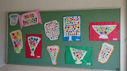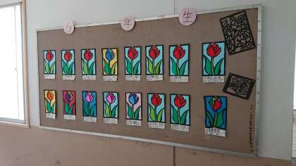 校内には学年ごとに掲示板があり、絵など図工の作品や習字や川柳など国語の作品を掲示しています。今回は1、3、6年生の作品を紹介します。