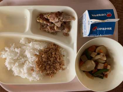 【今日の献立】ごはん 牛乳 豚肉のねぎじょうゆ焼き