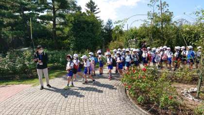 今日は絶好の遠足日和となり、1・2年生は浜寺公園に出かけました。北天下茶屋駅から貸切電車に揺られること1時間弱、堺市にある浜寺公園できれいなバラを見たり、遊具で楽しく遊びました。おうちの方につくってもらったお弁当もあっという間になくなるほど大きな広場で思い切り体を動かしました。帰りの電車ではくたびれてぐっすり眠る子もたくさんいました。おうちの方にたくさんおみやげ話をしてくだいね。