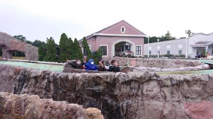 人気は急流すべりと海賊船(バイキング)です。学校数も増え、順番待ちの列ができています。