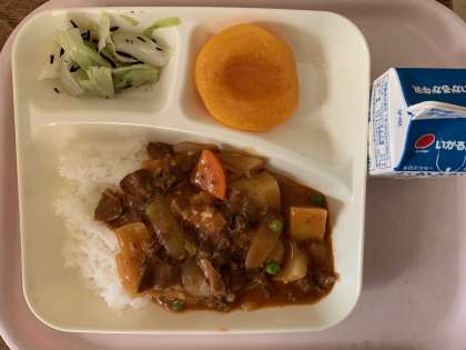 【今日の献立】牛乳 ハヤシライス(米粉) キャベツのひじき