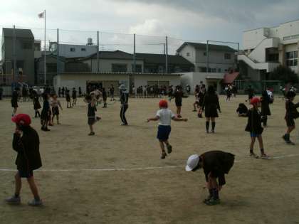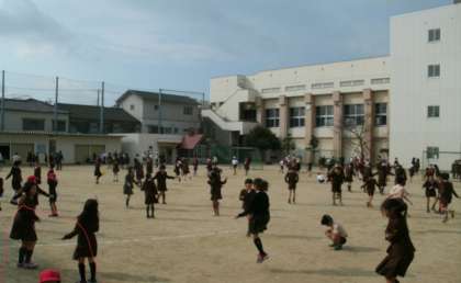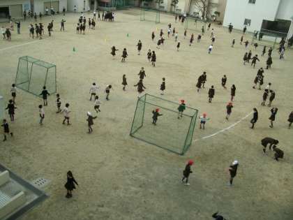 15分休みに登校児童で一斉に運動場に出ています。