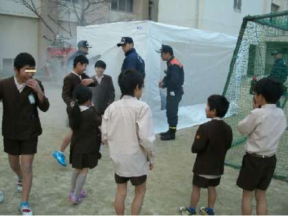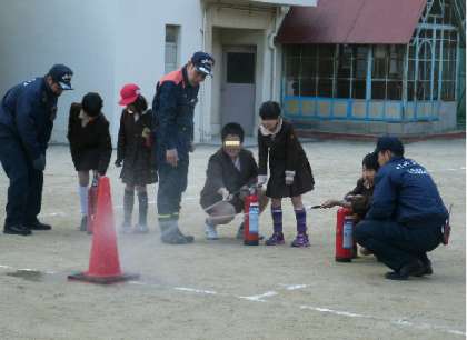 西成消防署のみなさんにお越しいただき、火災の避難訓練を行いました。
