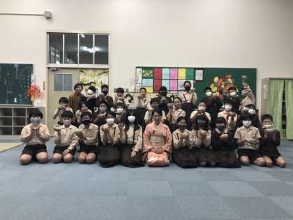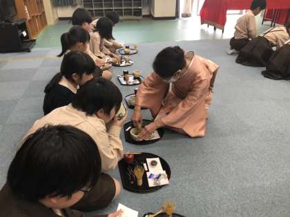 「お茶」は「茶道」といわれるように、決まりごとをおさえながらお茶のかおりや味をじっくり楽しみます。「お先にちょうだいします」「結構なお点前でした」などの挨拶だけでなく、割りばしの使い方までもきちんとしたきまりがあることに驚きました。甘いお菓子を食べることによって、よりお茶の味が際立つこともわかりました。藤井先生ほんとうにありがとうございました。