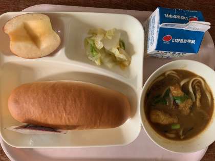 【今日の献立】コッペパン(ブルーベリージャム) 牛乳 カレーうどん