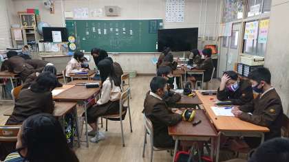 5年生は新しい係を決めています。自分のやってみたい仕事を選び、友だちと工夫して取り組むことによってクラスがまとまっていきます。
