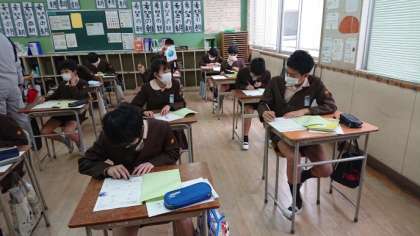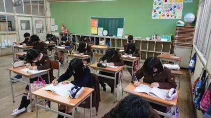 6年生もプリント学習です。冷たい雨が降り続いていますが、集中力は途切れません。さすが6年生です。