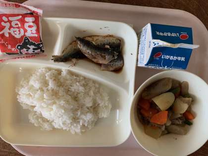 今日は、「いわし」と「いり大豆」を使った節分の行事献立でした。