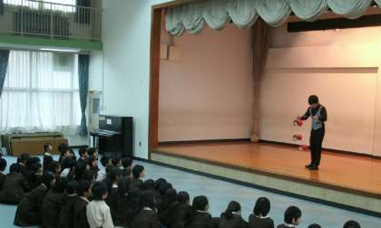 今回は「ジャグリング」のすばらしい技を見せていただいた後、参加者全員で、お手玉ジャグリングを体験させていただきました。