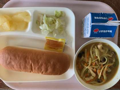 【今日の献立】コッペパン(アプリコットジャム) カレースープスパ