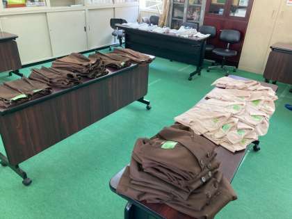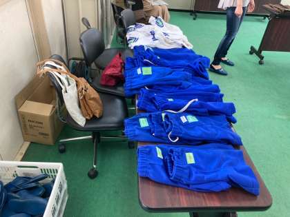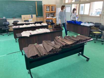 制服、体操服がたくさん集まりました。日に日に成長する子どもたちのために、ご協力ありがとうございます。世界はSDGsの取り組みが当たり前になっています。当然、日本でも取り組んでいかなければなりません。リサイクル活動は目標の一つ「つくる責任 つかう責任」になっています。今後もよろしくお願いします。