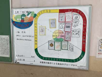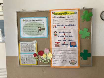 給食室には、朝食の重要性や栄養素の掲示がしてあります。