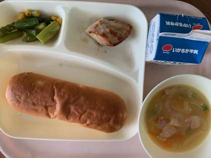 ンと野菜のスープ グリーンアスパラガスのソテー 牛乳