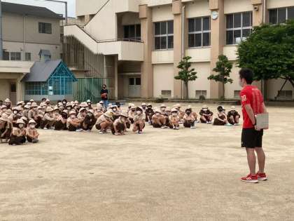 各学級で担任の先生からのお話の後、避難訓練を実施しました。指示があってから、全員集合完了まで、3分13秒でした。昨年より27秒速かったです。非常に迅速に行動し、集合も担任の先生方の指示をしっかり守りました。