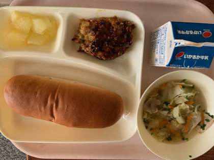 【今日の献立】黒糖パン カレードリア 豚肉とキャベツのスープ りん