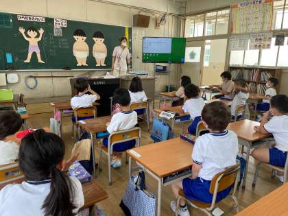 国語の絵日記と体重測定時に行った性教育(プライベートゾーン)学習の様子です。