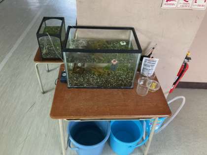学年によっては、メダカやザリガニを飼っていますが、…?