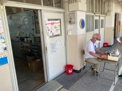 コロナ感染対策のため、各学級担任は教室で体温などの健康観察をしています。また児童は現在の心の状態を天気で表し、タブレットの「心の天気」に入力しています。心の状態を見える化することで、ストレスや不安を少しでも早く察知するためです。そして、遅れてきたり、不安があったり、しんどい児童は職員室前に、こども生活・学びサポーターの鳥前さんが健康観察をしながら話を聞いてくれています。