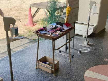 玄関ホールに「落とし物」を展示してあります。個人のものがありましたら、持って帰ってください。