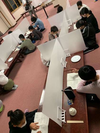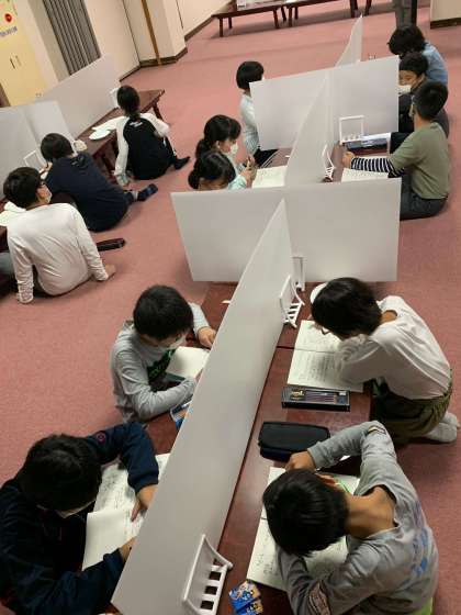 早朝からの活動を思い出して、1日の振り返りをしおりに書き込みます。