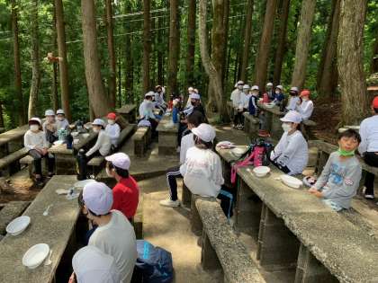 自分達で炊いたご飯に宿の方に準備していただいたカレーをかけていただきます!