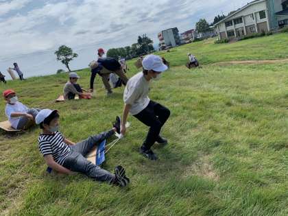 草そり遊び