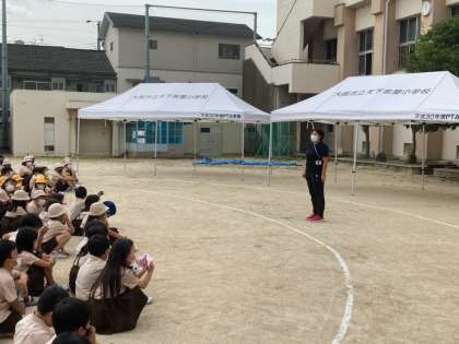 11:00より火災を想定した避難訓練を実施しました。家庭科室が火元ということで、中央階段以外を通って運動場に避難しました。今回は3分44秒かかりました。前回より4秒かかりましたが、運動場にでたらかけあしというのを忘れていたためでした。避難訓練を繰り返す上で、改善点を見つけ、実際の時に役立つようにしていきたいと思います。