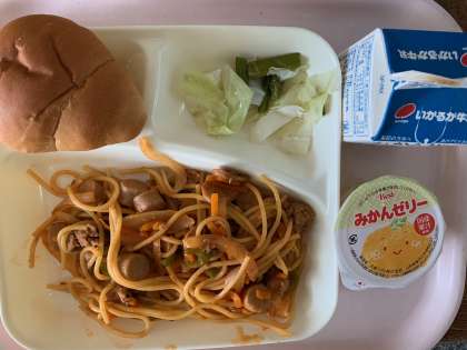【今日の献立】小黒糖パン イタリアンスパゲッティ グリーンアス
