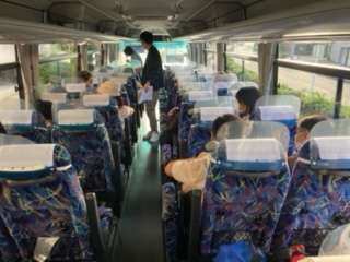 バスに乗車しました。お見送りありがとうございました。