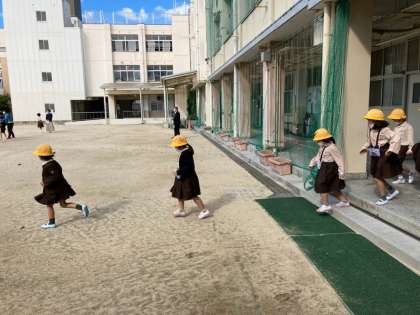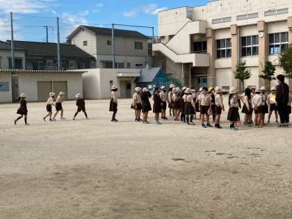 一時避難です。運動場に集合です。