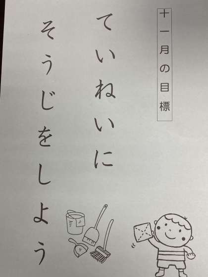 今月の目標は「ていねいにそうじをしよう」です。学校生活の基本の一つ『場を清め』です。