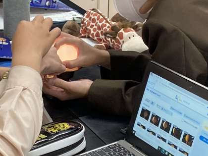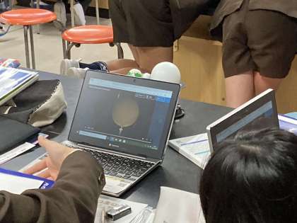 先生の説明を受けた後、自分の端末を使って班で相談しながら考えていきます。