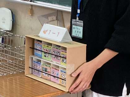 PTAの方々に給食の時間に、各教室へ行って「ベルマーク箱」を設置していただきました。