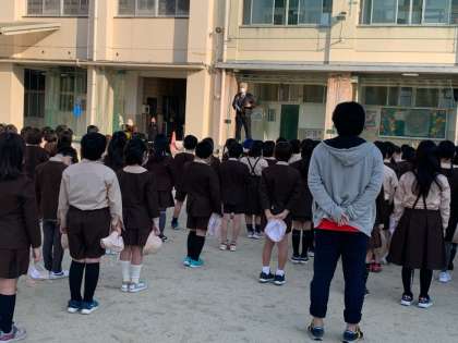 校長先生は、「時間を守ること」と「本当の幸せ」について話しました。