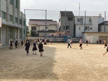 コロナ禍では、休み時間の運動場の使用は学年ごとでした。