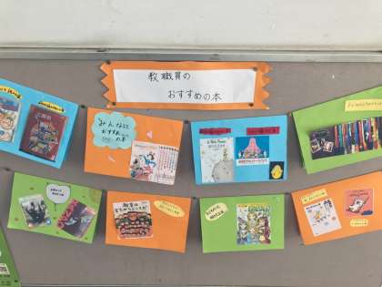 図書委員会で先生方にインタビューをして「おすすめの本」を紹介してくれました。