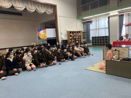 地域の方に講師として来ていただき、お茶会の作法を通して礼儀などのマナーを学びます。